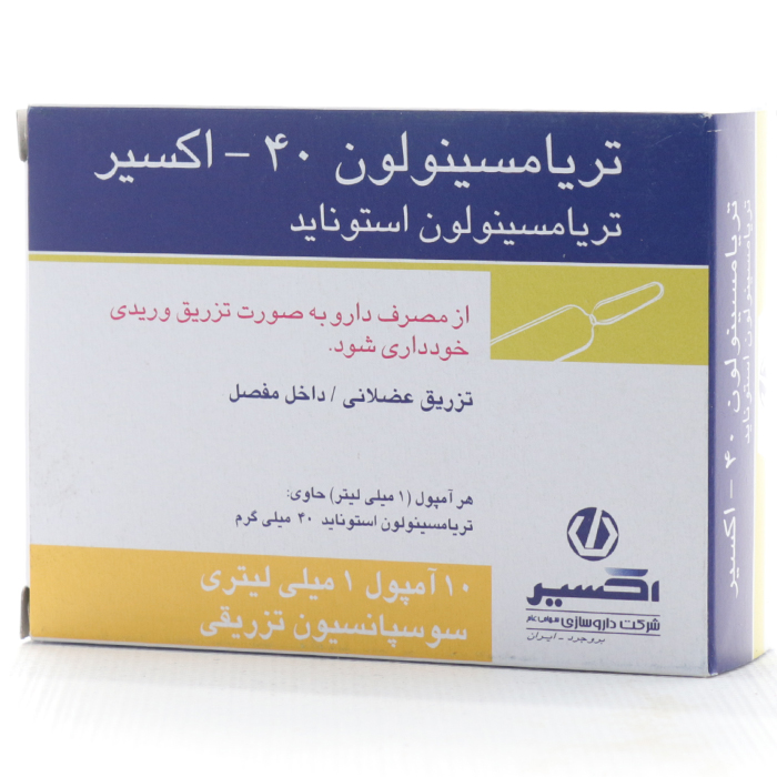 - هر آمپول (1 میلی لیتر) حاوی: تریامسینولون استوناید 40 میلی گرم