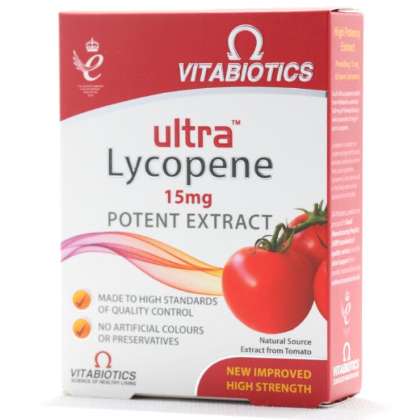 اولترا لیکوپن یک فرآورده طبیعی حاوی لیکوپن است که با خاصیت آنتیاکسیدانی خود به حفظ سلامت عمومی بدن و تقویت سیستم قلبی و عروقی کمک میکند. این محصول تحت لیسانس شرکت VITABIOTICS انگلستان تولید شده است. هر جعبه حاوی ۲ بلیستر ۱۵ عددی به فرم قرص است.ترکیبات و ویژگیهای لیکوپن