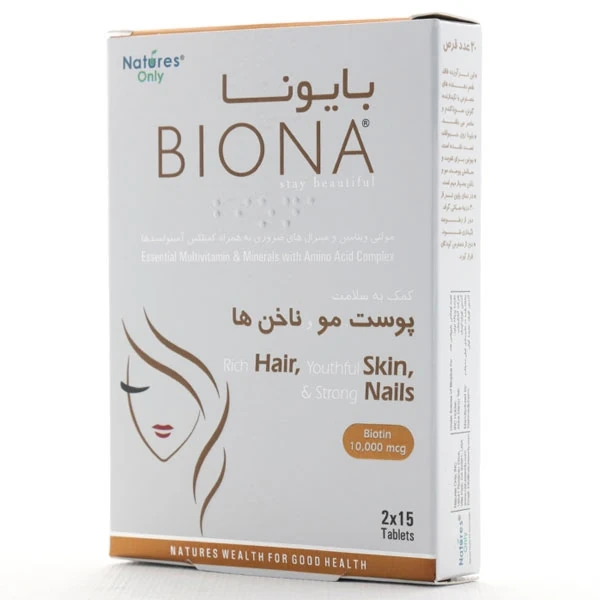 قرص بایونا نیچرز اونلی با ترکیبات منحصربفرد خود که شامل اکثریت ریز مغذی ها واملاح مورد نیاز بدن برای داشتن پوست مو وناخن سالم را بهمراه دارد. بایونا به شما کمک می کند تا به راحتی دارای پوستی شاداب وموهای درخشان باشید این قرص به عنوان یک مکمل موثر در رسیدن به زیبایی می باشد.