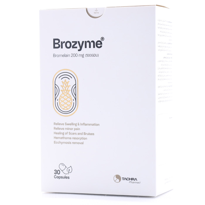 کپسول بروزایم حاوی ۲۰۰ میلی گرم بروملین است که به طور فعال در کاهش التهاب و درد ناشی از آن عمل میکند. بروملین که در کپسول بروزایم مشتق از آناناس است، یک ترکیب از آنزیمهای پروتئولیتیک است که به هضم پروتئینها در معده و روده باریک کمک میکند.