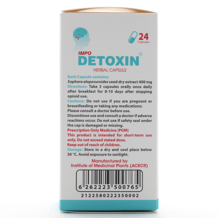 دتوکسین یک مکمل گیاهی حاوی 400 میلیگرم عصاره خشک دانه گیاه تلخ بیان (Sophora alopecuroides) است که به منظور کمک به ترک اعتیاد طراحی شده است. این مکمل با کاهش علائم ناشی از ترک مواد مخدر مشتق از تریاک (اوپیوئیدها) و تسهیل فرآیند سمزدایی بدن، میتواند به بهبود کیفیت زندگی مصرفکنندگان کمک کند. وجود ترکیبات طبیعی در این محصول، آن را به گزینهای مؤثر برای حمایت از فرآیند ترک اعتیاد تبدیل کرده است.دتوکسین برای چیست