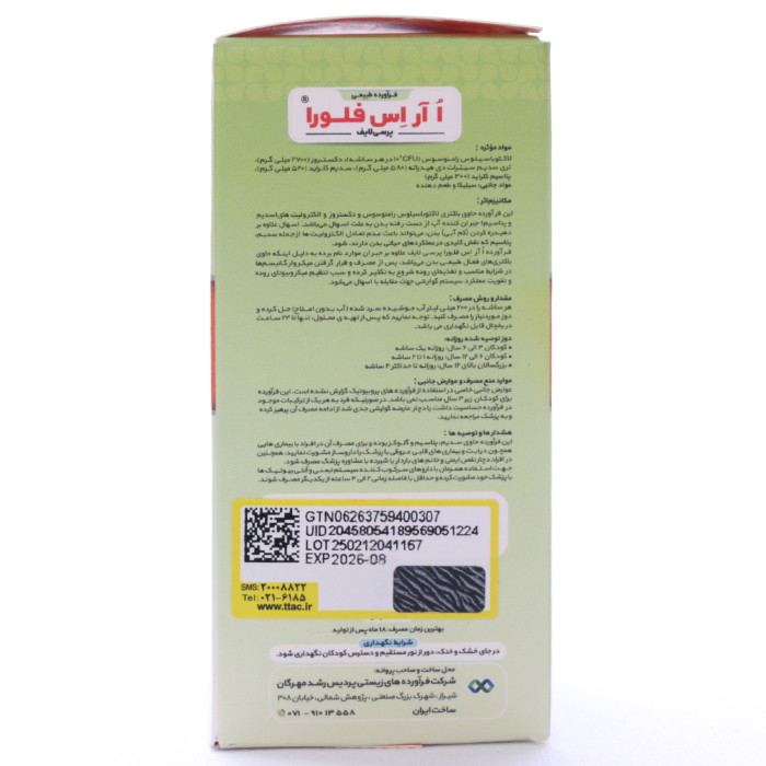 این فراورده حاوی باکتری لاکتوباسیلوس رامنوسوس و دکستروز و الکتورلیت های (سدیم و پتاسیم) جبران کننده آب از دست رفته بدن به علت اسهال می باشد. اسهال علاوه بر دهیدراته کردن (کم آبی) بدن، می تواند باعث عدم تعادل الکترولیت ها از جمله سدیم، پتاسیم که نقش کلیدی در عملکردهای حیاتی بدن دارند، شود. فراورده ا آر اس فلورا پرسی لایف علاوه بر جبران موارد نامبرده به دلیل اینکه حاوی باکتری های فعال طبیعی بدن می باشد، پس از مصرف و قرار گرفتن میکرو ارگانیسم ها در شرایط مناسب و تغذیه ای روده شروع به تکثیر کرده و سبب تنظیم میکروبیوتای روده و تقویت عملکرد سیستم گوارشی جهت مقابله با اسهال می شود.ترکیبات