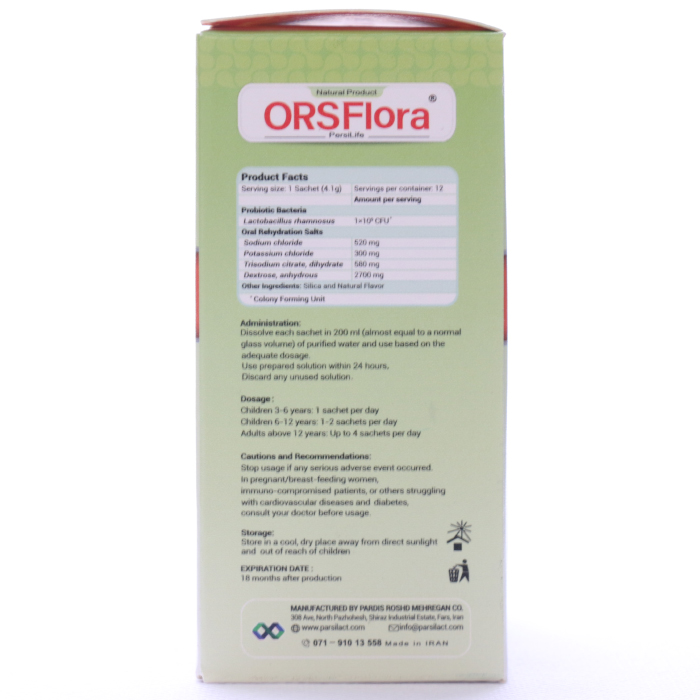 ساشه او آر اس فلورا یکی از مکملهای کاربردی برای کمک به جبران سریع آب و املاح از دست رفته در اثر اسهال و همچنین تنظیم تعادل میکروبی روده است. این محصول حاوی ترکیبات مؤثری مانند لاکتوباسیلوس رامنوسوس، دکستروز و تریسدیم سیترات دیهیدراته بوده و ضمن کمک به بازسازی فلور طبیعی روده، در کاهش شدت اسهال، خصوصاً اسهال ناشی از مصرف آنتی بیوتیک، مؤثر است. استفاده از این ساشه به ویژه در شرایطی که بدن دچار کمآبی و بیتعادلی الکترولیتی شده، بسیار ضروری و کارآمد است.