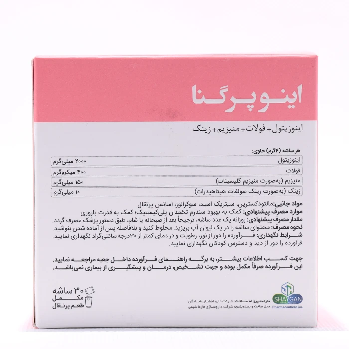 ساشه اینوپرگنا دارو افشان شایگان با ترکیب اصلی اینوزیتول ساخته شده است و به بهبود سندرم تخمدان پلی کیستیک و قدرت باروری کمک میکند. اینوزیتول مانند ویتامینها عمل میکند و معمولاً به صورت خوراکی درمان اختلالات متعددی از جمله سندرم متابولیک را تسهیل میکند.