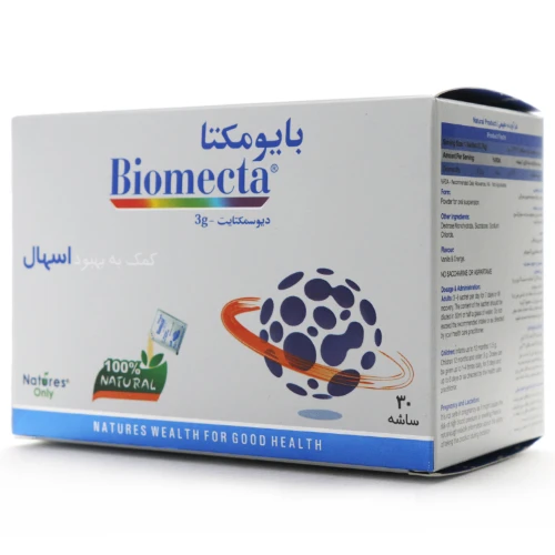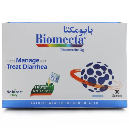 هر ساشه بایومکتا نیچرز اونلی حاوی ۳ گرم دیوسمکتیت است؛ ترکیبی معدنی با خاصیت جذب بالا که با گرفتن سموم، عوامل بیماریزا و مایعات اضافی در روده، تعداد دفعات اسهال را کاهش، قوام مدفوع را بهبود و تحریکات گوارشی را تسکین میدهد. بایومکتا بهویژه در اسهالهای ناشی از ویروسها، آنتیبیوتیکها، مسمومیت غذایی و اسهال مسافرتی کاربرد دارد و گزینهای ایمن و مؤثر برای بهبود علائم گوارشی است.