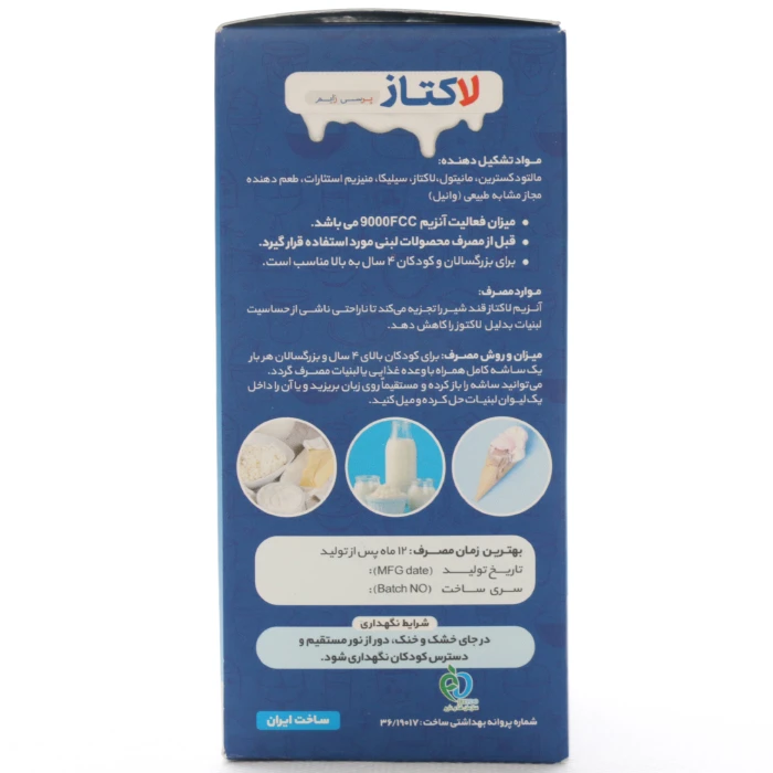 آنزیم لاکتاز قند شیر را تجزیه می کند تا ناراحتی ناشی از حساسیت لبنیات بدلیل لاکتوز را کاهش دهد.