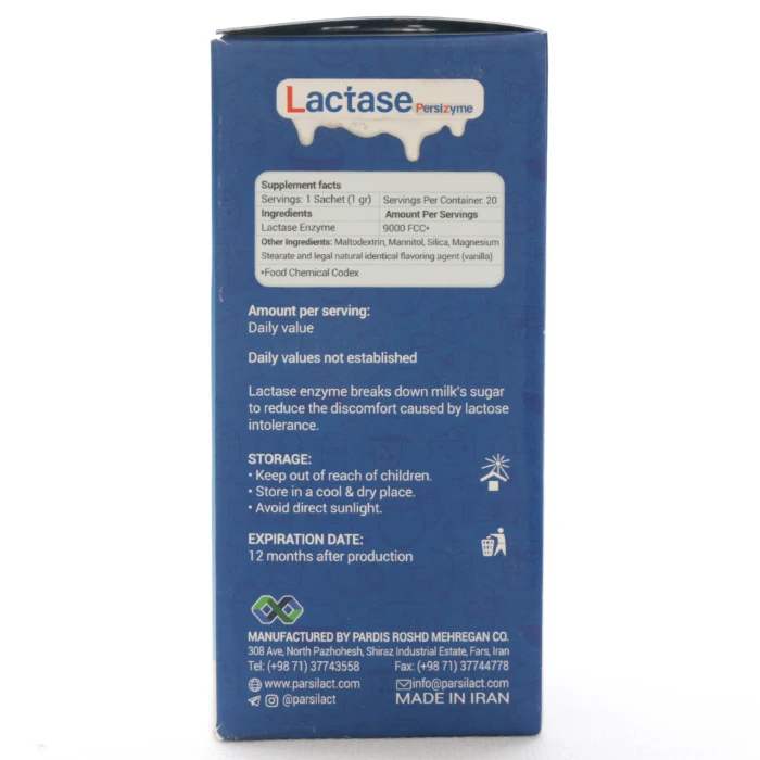 ساشه لاکتاز پرسی زایم به تجزیه قند شیر (لاکتوز) کمک میکند، به طوری که از بروز ناراحتیهای گوارشی ناشی از حساسیت به لاکتوز جلوگیری مینماید. این آنزیم میتواند راحتی را برای افرادی که با مشکل هضم لاکتوز مواجه هستند، فراهم کند.