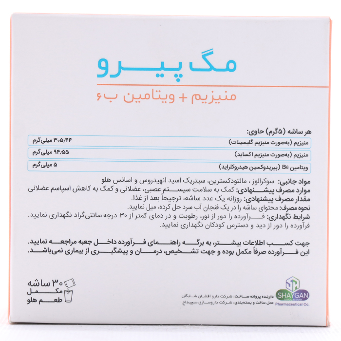 معرفی ساشه منیزیم B6 مگ پیرو شایگان 30 عددی