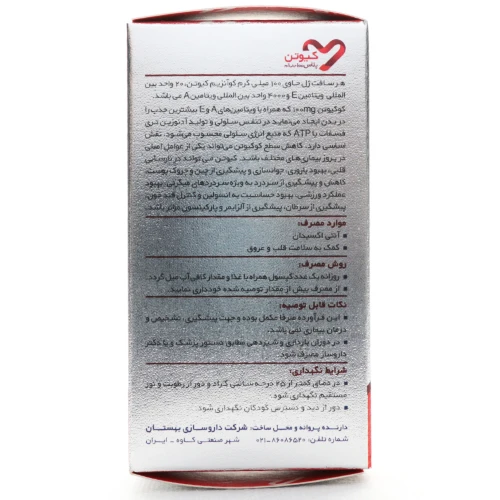 - حاوی 100 میلیگرم کوآنزیم Q10 برای تولید انرژی سلولی