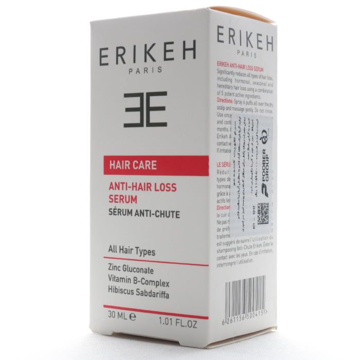 سرم ضد ریزش مو اریکه، یکی از محصولات تخصصی و انحصاری برای درمان و پیشگیری از ریزش مو است. این سرم با فرمولاسیون پیشرفته خود، به افزایش بازسازی پوست و مو، بهبود گردش خون موضعی و مهار آنزیم پنج آلفا ردوکتاز، که یکی از عوامل اصلی ریزش مو است، کمک میکند. ترکیبات موجود در این سرم شامل مواد مرطوبکننده، تغذیهکننده و ضد التهاب است که نه تنها کاهش دهنده ریزش مو است، بلکه باعث تقویت و بهبود سلامت مو نیز میشود. برای مشاهده و خرید سایر محصولات برند اریکه لطفا وارد این صفحه شوید. ریزش مو یکی از مشکلات شایع در بین خانمها و آقایان بوده و هر فردی ممکن است مدتی با این مشکل مواجه باشد. ریزش مو معمولا به خاطر عواملی نظیر ژنتیک، تغییرات هورمونی، کم خونی، استفاده مداوم از سشوار و رنگ کردن اتفاق میافتد.سرم مو محصولی مراقبتی و درمانی برای کنترل ریزش مو است که به رشد و حفظ سلامت مو کمک میکند و در ترمیم و افزایش استحکام موها تأثیر بسزایی دارد. سرم درمانی ریزش مو اریکه به واسطه فرمولاسیون منحصر بفردی که دارد در درمان ریزش مو موثر بوده و باعث ترمیم و بازسازی موها و پوست کف سر میگردد. این محصول با دارا بودن روغن کرچک، پروتئین هیدرولیز شده سویا، عصاره گل چای ترش و ویتامین B3 و B5 از ریزش موها جلوگیری میکند و با تنظیم کنترل چربی و افزایش گردش خون در کف سر موجب بهبود ریشه مو شده و به رشد مجدد موها کمک شایانی میکند. سرم ضد ریزش مو اریکه با تأمین مواد مغذی و ویتامینهای مورد نیاز موها، موجب تقویت فولیکولهای مو شده و در افزایش ضخامت و استحکام موها تأثیر زیادی دارد. پس از استفاده از این سرم احساس چربی و سنگینی بر روی موهای خود نخواهید داشت و نیازی به شستشوی موها نیست. سرم تقویت کننده مو اریکه دارای اثر مرطوب کنندگی بوده و مواد ضد التهاب است. این محصول در نهایت سبب بازسازی پوست سر و موها نیز می شود. سرم ضد ریزش اریکه در حجم 30 میلی لیتر و در بطری پمپ دار تولید شده است. این محصول تحت لیسانس فرانسه بوده و در ایران تولید شده است. سرم ضد ریزش اریکه را می توانید برای انواع مو بدون نیاز به آبکشی استفاده نمایید و از تاثیرات فوق العاده آن در کنترل ریزش مو بهره ببرید.ویژگی های سرم ضد ریزش مو اریکه
