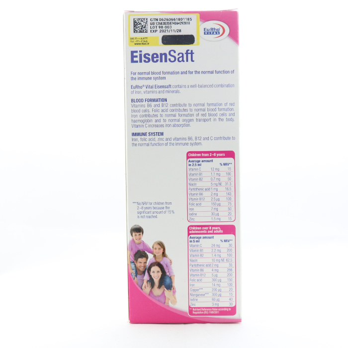 - شربت آیزن سافت یوروویتال یک مکمل تغذیهای کامل است که حاوی ویتامینهای گروه B و ویتامین C است. همچنین این محصول شامل املاح معدنی از جمله آهن، مس، ید و منگنز است که همگی نقش مهمی در فرآیند خونسازی برای بدن دارند.۲. چه کسانی میتوانند از شربت آیزن سافت یوروویتال استفاده کنند؟