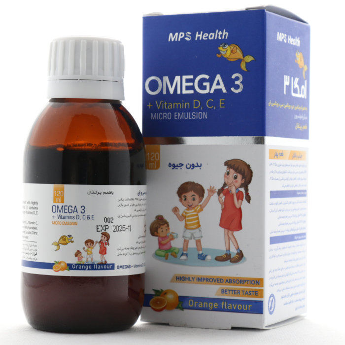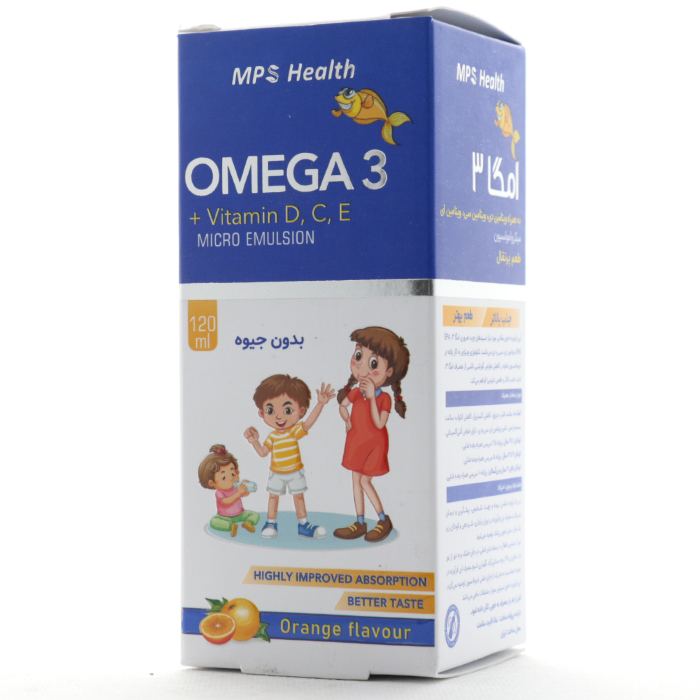 شربت امگا 3 ام پی اس هلث، میکروامولسیون امگا 3، حاوی مقادیر مورد نیاز اسیدهای چرب ضروری امگا 3، DHA، EPA، ویتامین ای، سی و دی می باشد. این محصول با تکنولوژی ویژه فرمولاسیون خود علاوه بر کاهش عوارض گوارشی ناشی از مصرف امگا 3 دارای قدرت جذب بالاتر و طعمی دلپذیر است.شربت امگا 3 ام پی اس هلث برای چیست