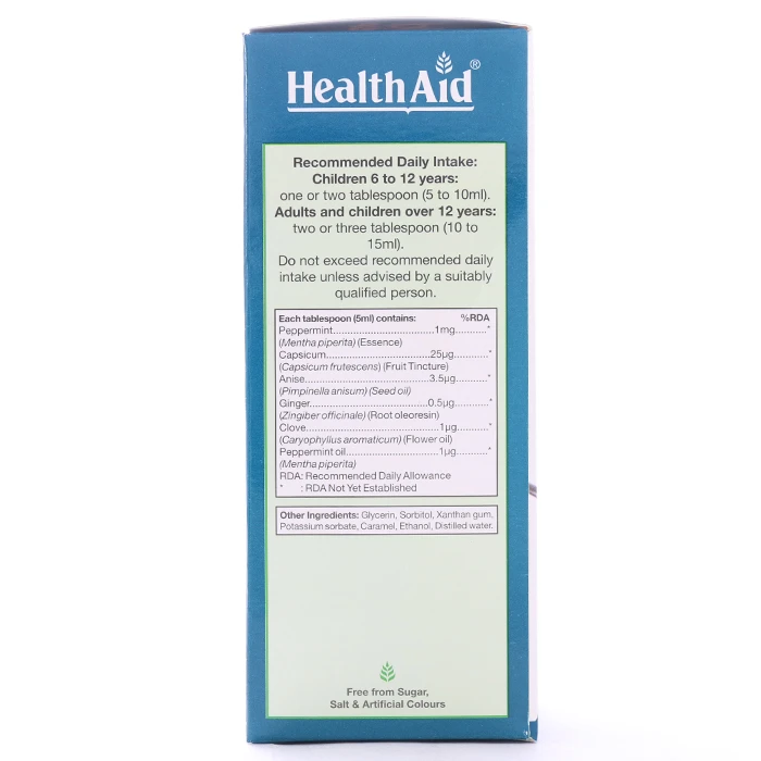 برون کلد هلث اید یک شربت گیاهی است که ترکیبی از عصارههای گیاهی نعنا فلفلی، رازیانه، فلفل دلمه، زنجبیل و میخک را در خود دارد. این مکمل گیاهی به شرح زیر ویژگیها را داراست: