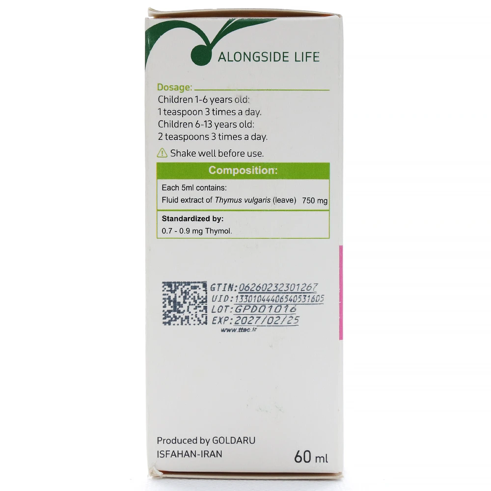 عصاره مايع برگها و سرشاخههای گلدار آويشن (Thymus vulgaris) به ميزان ۷۵۰ ميلیگرم در هر ۵ ميلي ليتر.