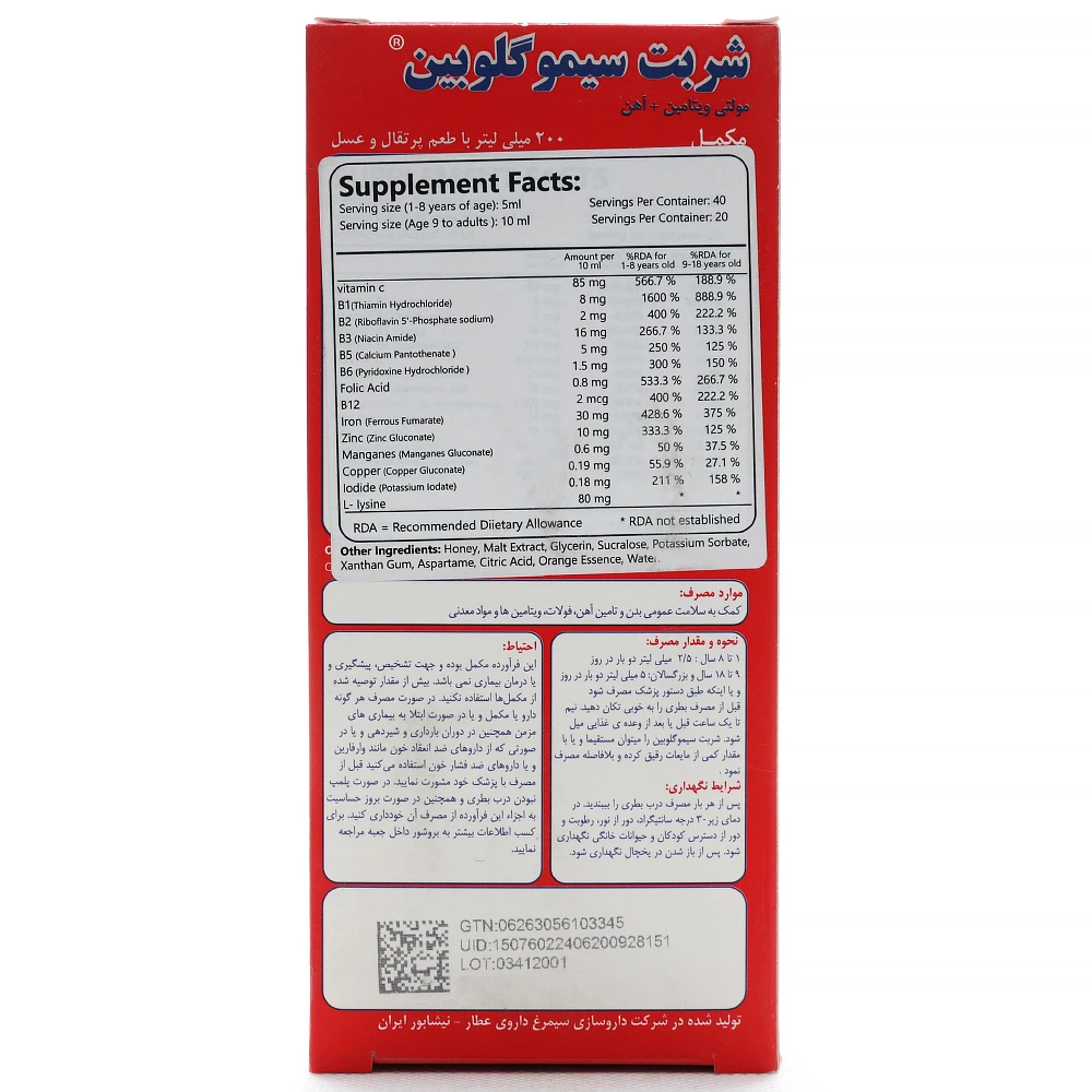 شربت سیموگلوبین سیمرغ دارو 200 میلی لیتری