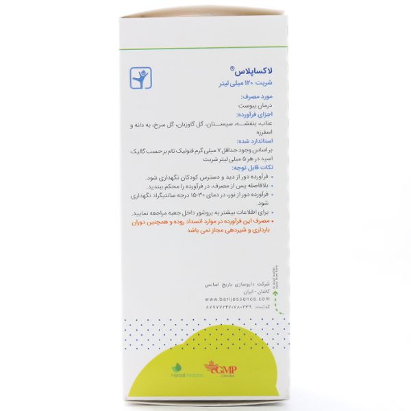 شربت لاکساپلاس باریج یک فرآورده گیاهی است که به رفع یبوست کمک میکند. این شربت حاوی ترکیباتی چون عناب، بنفشه، سپستان، گلگاوزبان، گل سرخ، بهدانه و اسفرزه بوده و همچنین شامل شکر سرخ میباشد. لاکساپلاس به حفظ سلامت دستگاه گوارش و تنظیم حرکات آن کمک میکند.