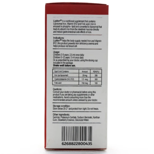 لیپیفر یک شربت خوراکی حاوی آهن لیپوزومال، فولیک اسید و ویتامین B12 است که برای پیشگیری و درمان کمخونی ناشی از فقر آهن در کودکان و بزرگسالان استفاده میشود. این شربت به ساخت گلبولهای قرمز سالم و افزایش انرژی کمک میکند.
