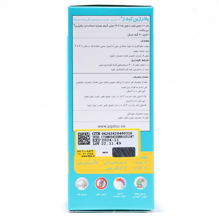 قبل از مصرف پشربت پلارژین کیدز پارس گیتا دارو خوب تکان دهید.