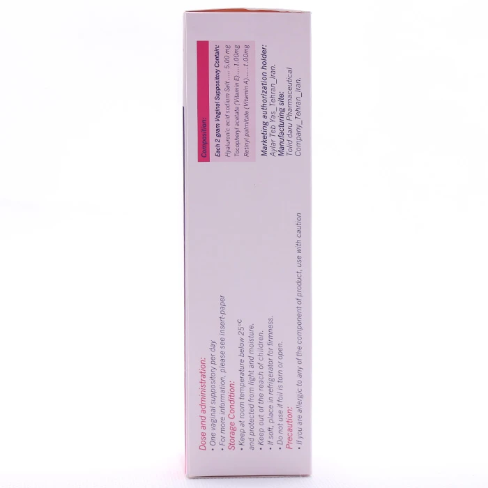 این محصول با داشتن ترکیبات قدرتمندی چون ویتامین E و هیالورونیک اسید، به بهبود شرایط واژن و حفظ رطوبت آن کمک میکند. ویتامین E موجود در این شیاف نقش مهمی در مایعسازی سلولهای واژن دارد و از آسیبهای بافتی ناشی از عوامل اکسیدان جلوگیری میکند.