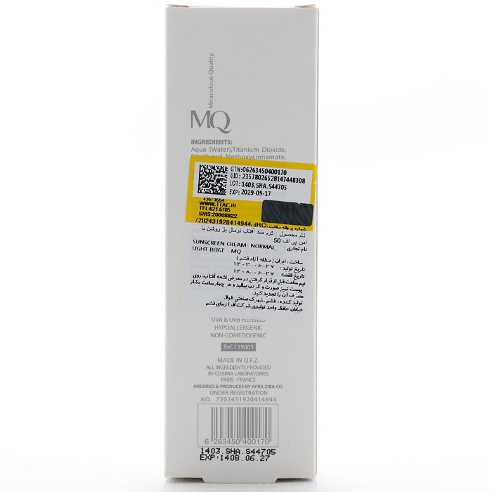 - ضد آفتاب پوست نرمال ام کیو فاقد پارابن