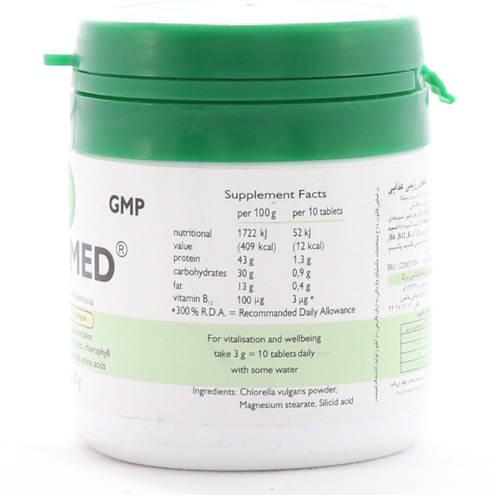 یک نوع جلبک سبز است که به عنوان یک ماده غذایی و مکمل غذایی استفاده میشود. این جلبک در آب شیرین یا آب شور یافت میشود و به صورت پودر یا قرص در دسترس است. مواد مغذی مهمی که در Chlorella Vulgaris وجود دارند عبارتند از: 1. چربی: Chlorella Vulgaris حاوی چربیهای سالم مانند اسیدهای چرب امگا-3 و امگا-6 است. این چربیها میتوانند به سلامت قلب و عروق کمک کنند و به عنوان منبع انرژی برای بدن عمل کنند. 2. پروتئین: Chlorella Vulgaris یک منبع غنی از پروتئین است و حاوی انواع اسیدهای آمینه ضروری است. پروتئینها برای رشد و تعمیر بافتهای بدن ضروری هستند و در تقویت سیستم ایمنی و ساخت مواد شیمیایی مورد نیاز بدن نقش دارند. 3. کربوهیدرات: Chlorella Vulgaris حاوی مقادیر قابل توجهی کربوهیدرات است. کربوهیدراتها منبع اصلی انرژی برای بدن هستند و در حفظ سطح انرژی و عملکرد بهینه بدن مهم هستند. 4. ویتامین B12 (سیانوکوبالامین): Chlorella Vulgaris منبع طبیعی ویتامین B12 است. ویتامین B12 برای سلامت عمومی بدن ضروری است و در عملکرد نورونها، تولید سلولهای خون، و عملکرد سیستم عصبی و ایمنی نقش دارد.جدول ترکیبات قرص آلگومد (به ازاي 3 گرم)
