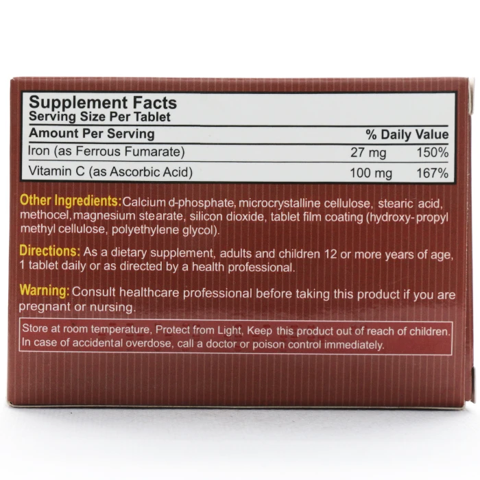 در کنار آهن، هر قرص این مکمل حاوی ۱۰۰ میلیگرم ویتامین C نیز هست. ویتامین C با افزایش جذب آهن در روده، به ویژه از منابع گیاهی، باعث افزایش اثربخشی این مکمل میشود. علاوه بر این، ویتامین C به عنوان یک آنتیاکسیدان قوی از سلولهای بدن در برابر آسیبهای اکسیداتیو محافظت کرده و در حفظ سلامت سیستم ایمنی، پوست، استخوانها و مفاصل نقش دارد. ترکیب همافزای آهن و ویتامین C در این محصول، آن را به گزینهای ایدهآل برای حفظ انرژی، پیشگیری از کمخونی و ارتقای سلامت عمومی بدن تبدیل کرده است.