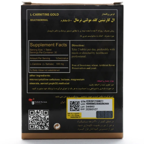 ترکیبات قرص ال کارنیتین گلد 500 مولتی نرمال