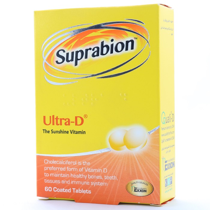 قرص اولترا د سوپرابیون سرشار از ویتامین دی مورد نیاز بدن بوده که این ویتامین با ایجاد افزایش جذب فسفر و کلسیم از رودهها و کاهش دفع از کلیه به متابولیسم استخوانها و همچنین به رشد سلول کمک میکند.