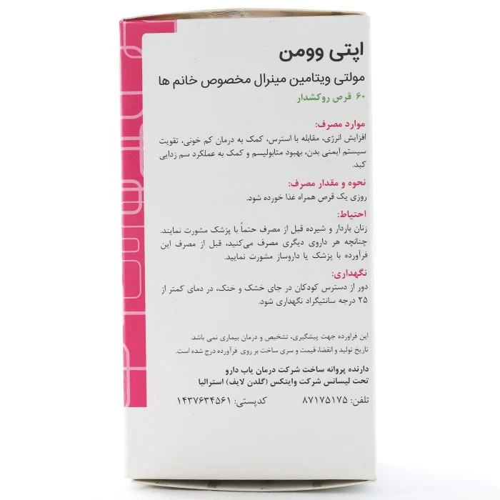 - قرص اپتی وومن گلدن لایف حاوی مولتی ویتامین و مینرال