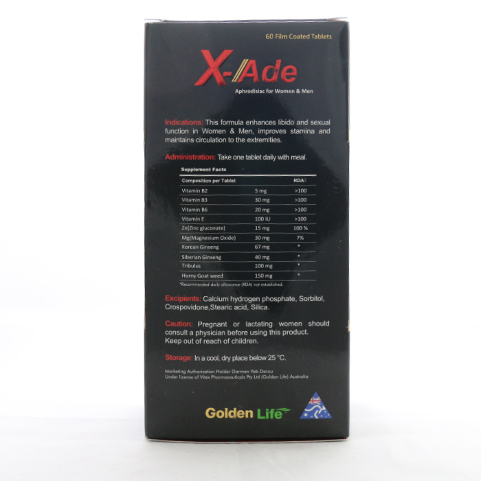 قرص ایکس اید گلدن لایف با ترکیبی اختصاصی از ویتامینها، مواد معدنی و گیاهان دارویی موثر، نقش مهمی را در افزایش تمایلات و قوای ( ج ن س ی ) و تقویت باروری در بانوان و آقایان ایفا میکند.