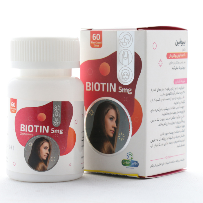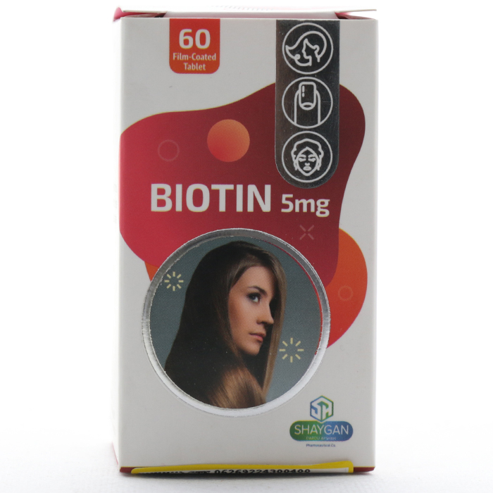 بیوتین 5 میلیگرم شایگان با تامین دوز مطلوبی از ویتامین ب7، در تقویت مو، پوست و ناخن،و کمک در تنظیم متابولیسم پروتئین، کربوهیدرات و چربی، جلوگیری از ریزش مو، افزایش استحکام ناخنها و کاهش خشکی و التهاب پوست کمک میکند. این ویتامین با بهبود سنتز کراتین و اسیدهای چرب، رشد و سلامت این اجزا را تقویت کرده و در متابولیسم انرژی و کاهش علائم نوروپاتی دیابتی نیز مؤثر است.بیوتین شایگان 5 میلی گرم برای تقویت و بهبود سلامت مو