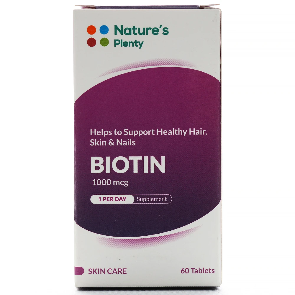 بیوتین 1000 نیچرز پلنتی با تأمین دوز مناسبی از بیوتین، انتخابی مناسب برای تقویت طبیعی پوست، مو و ناخن بهویژه در افرادی است که به دلایل مختلف دچار کمبود این ریزمغذی هستند.