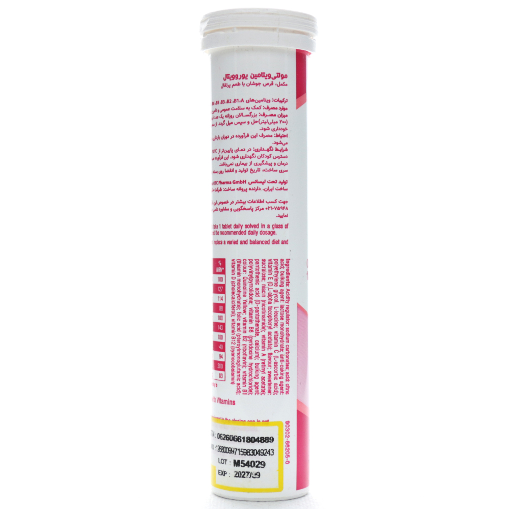 - قرص جوشان مولتی ویتامین یوروویتال، حاوی ویتامین B کمپلکس، ویتامین A، ویتامین K، نیاسین و بیوتین