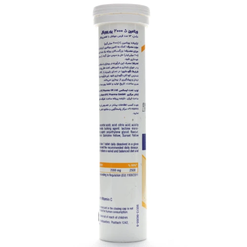 ویتامین C (اسکوربیک اسید)، ۲۰۰۰ mg در هر قرص جوشان.