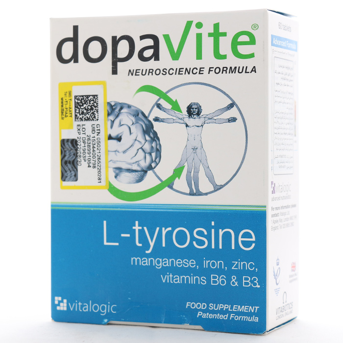 قرص دوپاویت ویتابیوتکس، ترکیبی از التیروزین، روی، زینک، ویتامینهای گروه ب، به خصوص بی3، بی6 و فولات را در خود جای داده است. این مکمل میتواند به عنوان یک حمایت تغذیهای جامع برای بهبود عملکرد ذهنی و بدنی، تقویت عملکرد شناختی، سیستم عصبی و روانی مورد استفاده قرار گیرد. با افزایش سطح انتقالدهندههای عصبی در مغز، این مکمل به تقویت حافظه و بهبود عملکرد ما در شرایط پر استرس کمک میکند.