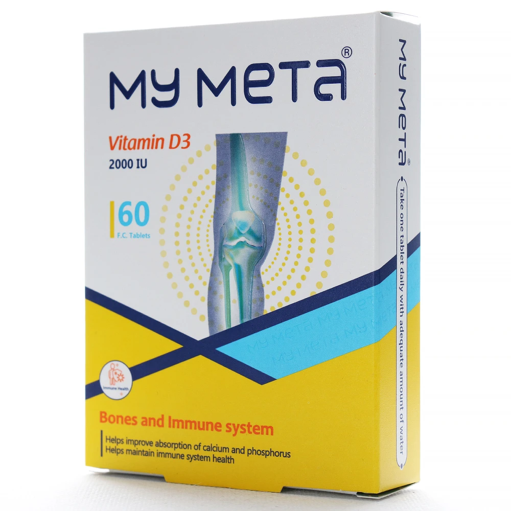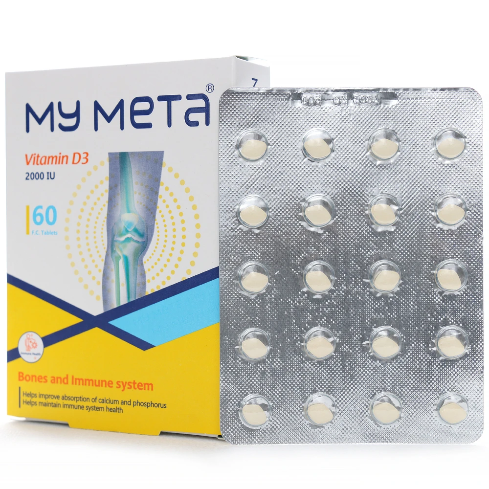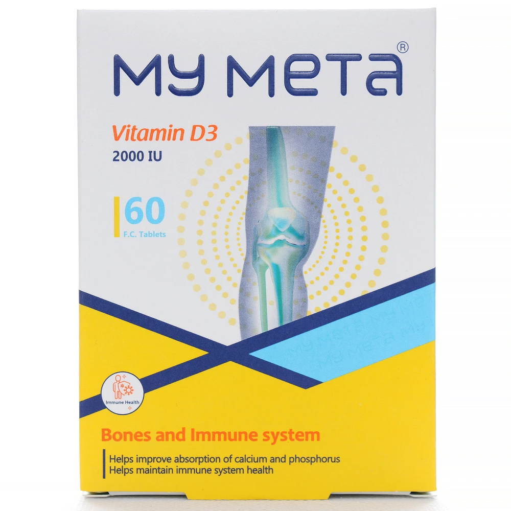 قرص د3 2000 مای متا، یک مکمل روزانه است که به جذب کلسیم و فسفر کمک کرده و از سلامت استخوانها، دندانها و سیستم ایمنی بدن حمایت میکند.