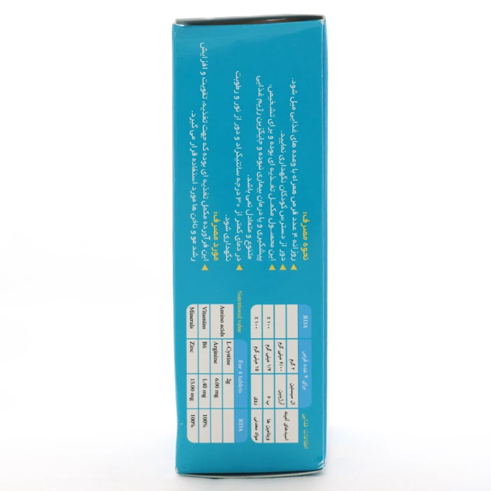 – قرص سیستئین ب6 زینک نیل فارمد حاوی السیستین، آرژنین، ویتامین B۶ و روی است که به تغذیه رسانی و افزایش رشد موها و ناخنها کمک میکنند.