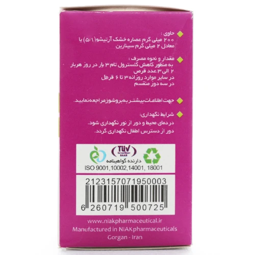 - قرص سینارول نیاک، فرآورده گیاهی کاهنده چربی خوبی (کلسترول)