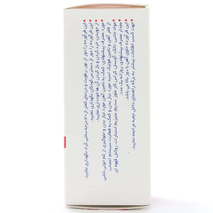 - در صورت وجود هرگونه حساسیت به رنگها، غذاها، فولیک اسید و مواد محافظ