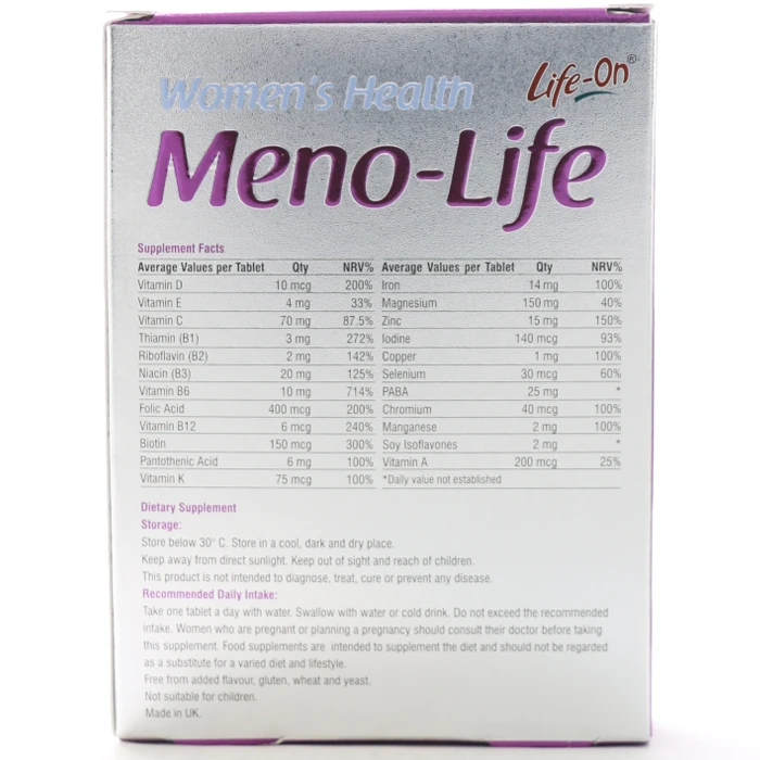 – قرص منولایف یک مکمل غذایی است که حاوی ویتامینها و مواد معدنی مورد نیاز بدن میباشد. این قرص باعث کاهش مشکلات یائسگی، گر گرفتگی و تعریق شبانه در خانمها میشود.
