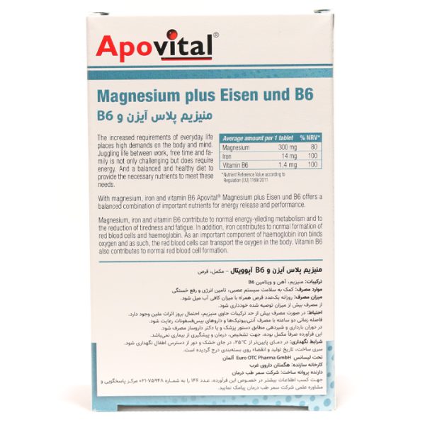 قرص منیزیم پلاس آپوویتال حاوی منیزیم، آهن و ویتامین B۶ میتواند در بهبود عملکرد عضلات، سیستم عصبی و قلب، تامین انرژی، حفظ تعادل الکترولیتها، تولید انرژی، درمان اختلالات نوروپاتیک، کاهش درد و تنگی عضلانی، کاهش تعداد حملات سردردهای میگرنی و بهبود عملکرد دستگاه قلب و عروق کمک کند.