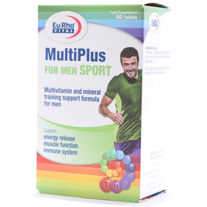 قرص مولتی پلاس فور من اسپرت یوروویتال یک مکمل تغذیه ای و مولتی ویتامین حاوی انواع ویتامین ها، مواد معدنی، اسیدهای آمینه ضروری و عصاره جنسینگ می باشد که برای تامین انرژی مورد نیاز بدن و تقویت سیستم ایمنی در آقایان ورزشکار توصیه می شود.