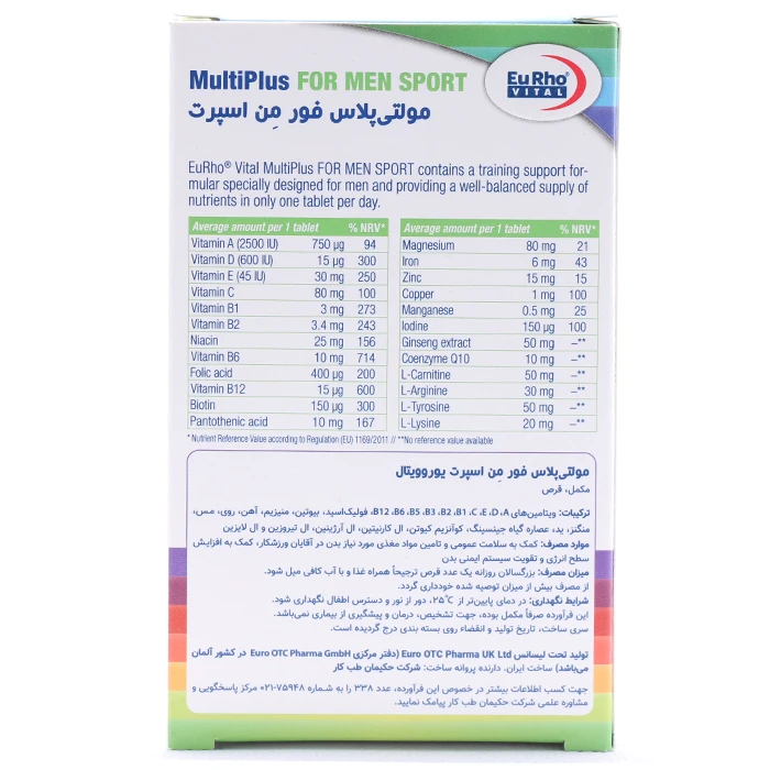 ویتامین های موجود در مولتی پلاس فور من اسپرت یوروویتال