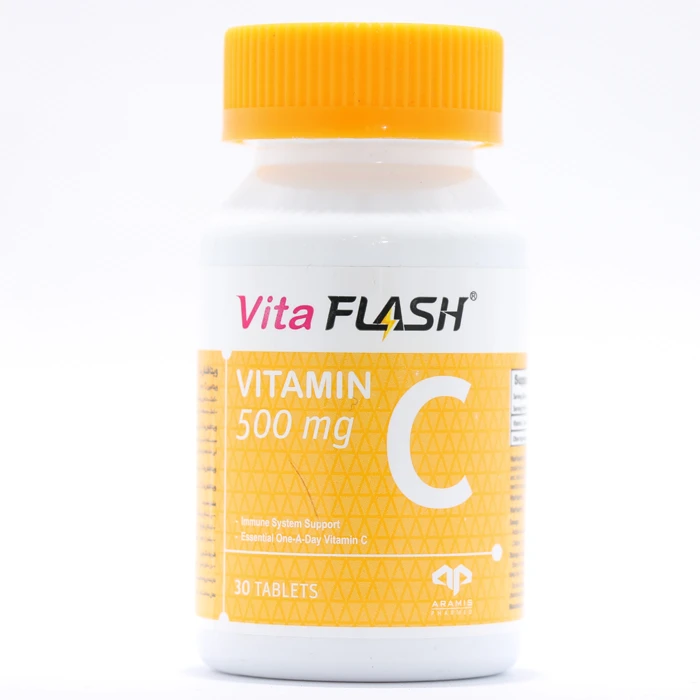 قرص ویتامین سی 500 ویتافلش یک قرص حاوی ۵۰۰ میلیگرم ویتامین C (ویتامین ث) است. این ویتامین برای تقویت سلامت عروق خونی، سنتز کلاژن و مواد داخل سلولی بافتهای بدن، حفظ سلامت استخوانها، غضروفها، دندانها، پوست و تاندونها بسیار ضروری است.