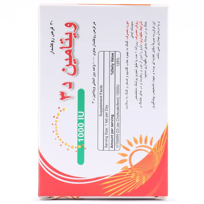 قرص ویتامین D3 1000 آریان سنا صرفا مکمل تغذیهای بوده و جهت تشخیص، پیشگیری و یا درمان بیماری نیست.