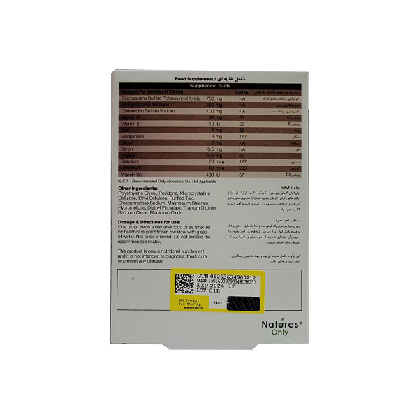 با داشتن گلوکزامین و ام اس ام، این قرص به تسکین دردهای مفصلی میپردازد. فراهم بودن ویتامین دی در ترکیبات این مکمل نه تنها از پوکی استخوان پیشگیری میکند، بلکه نقش موثری در کاهش علائم آرتروز و ترمیم غضروفها دارد. این ویژگیها باعث میشوند این مکمل، یکی از بهترین مکملهای حفظ سلامتی استخوان و مفاصل باشد.