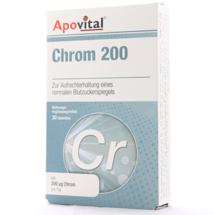 موثر در متابولیسم طبیعی، پروتئینها و کربوهیدراتها کمک به حفظ سطح طبیعی قند خون تنظیم متابولیسم طبیعی بدنترکیبات قرص کروم 200 میکروگرم آپوویتال