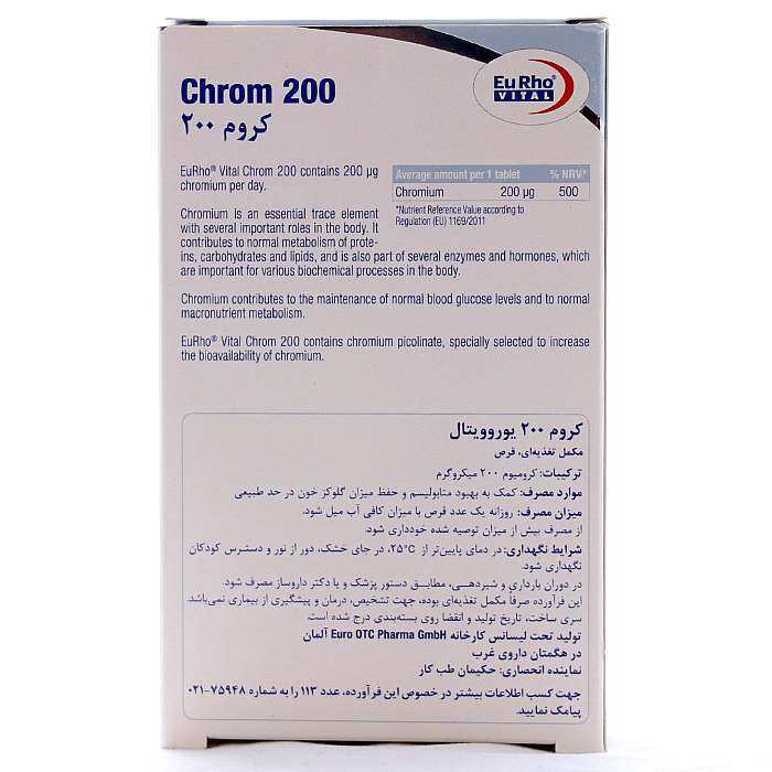 روزانه یک عدد قرص کروم 200 یوروویتالبا میزان کافی آب میل شود.