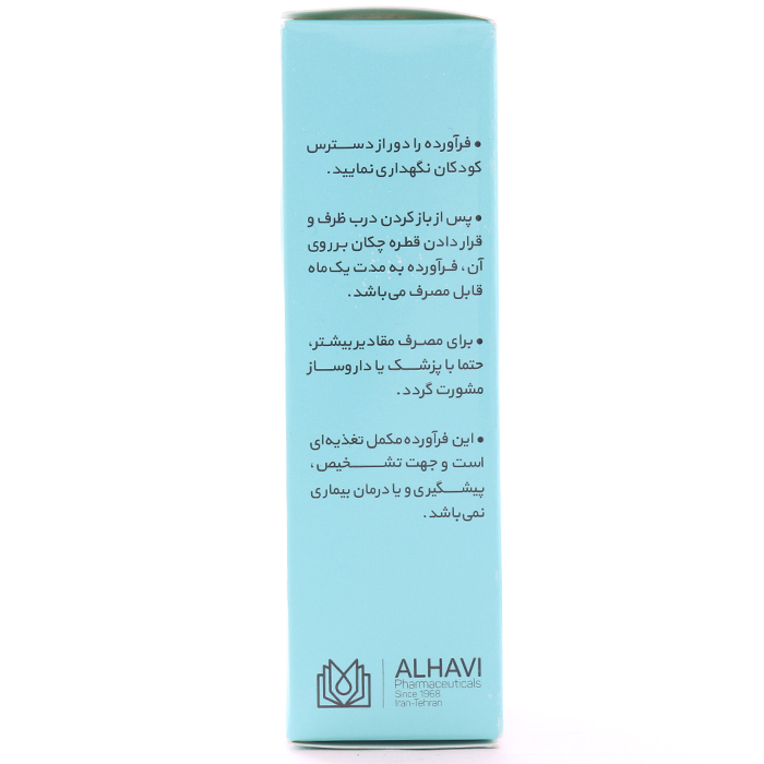 پس از باز کردن در ظرف و قرار دادن قطره چکان بر روی آن، فرآورده به مدت یک ماه قابل استفاده می باشد.