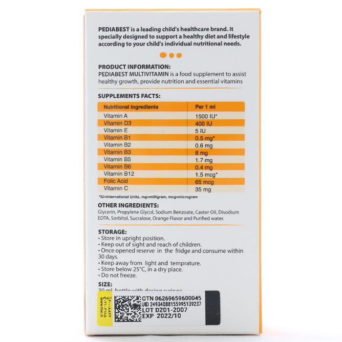 - قطره مولتی ویتامین پدیابست، سرشار از انرژی برای رشد سالم کودکان